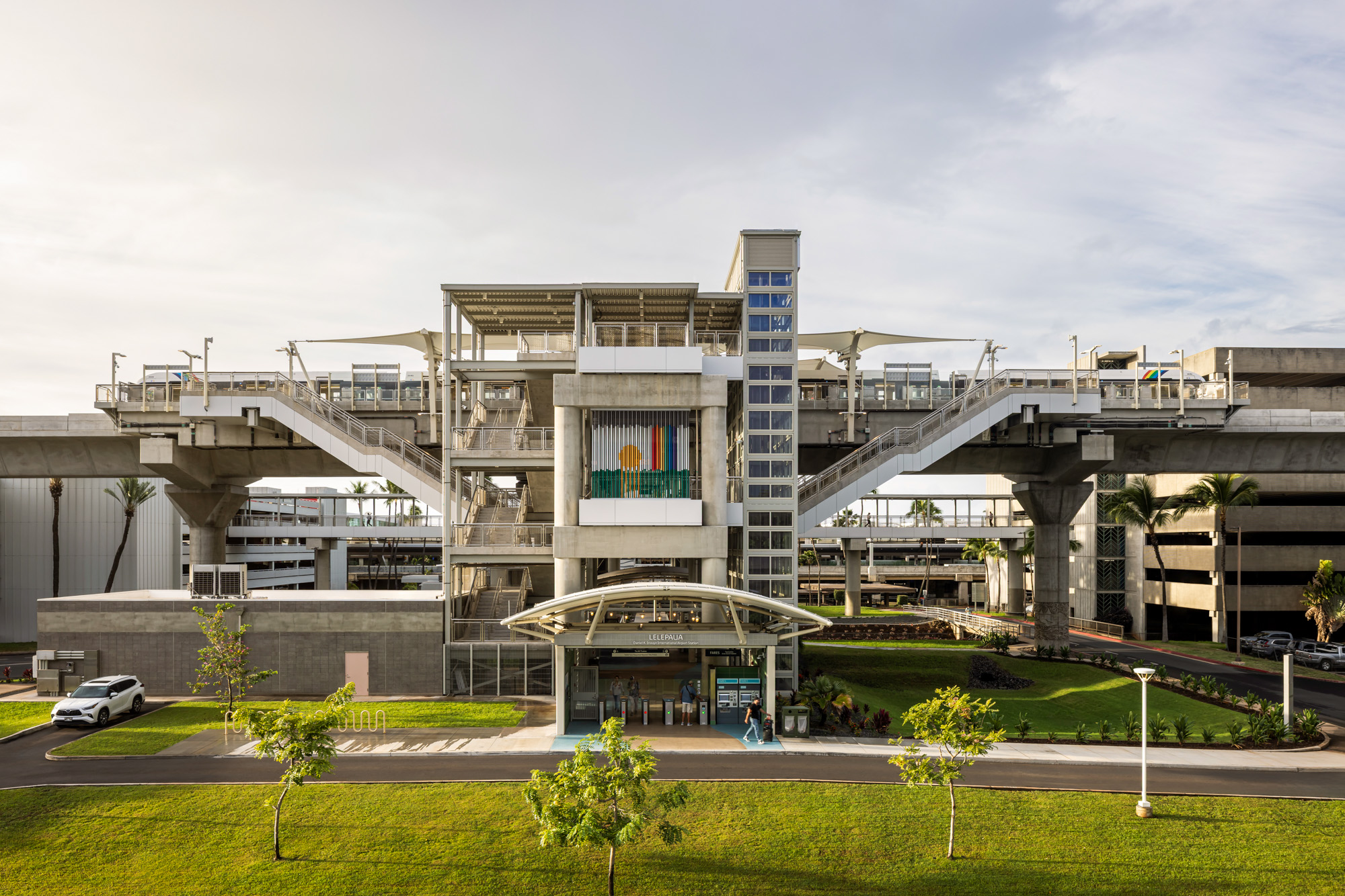 Developed through a collaboration of public agencies including the Honolulu Authority for Rapid Transportation (HART) and the City and County of Honolulu Department of Transportation Services, the stations combine durable infrastructure with contemporary architectural elements designed for long-term public use in Hawaii’s coastal climate.