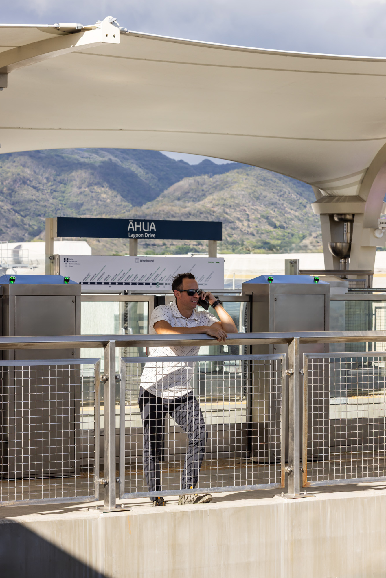 The photography focused on highlighting the scale of the stations, the rhythm and texture of the metal mesh panels, and the way the material interacts with Honolulu’s strong daylight and urban surroundings. These images capture how the architectural detailing contributes to the overall identity and functionality of the Skyline transit experience.