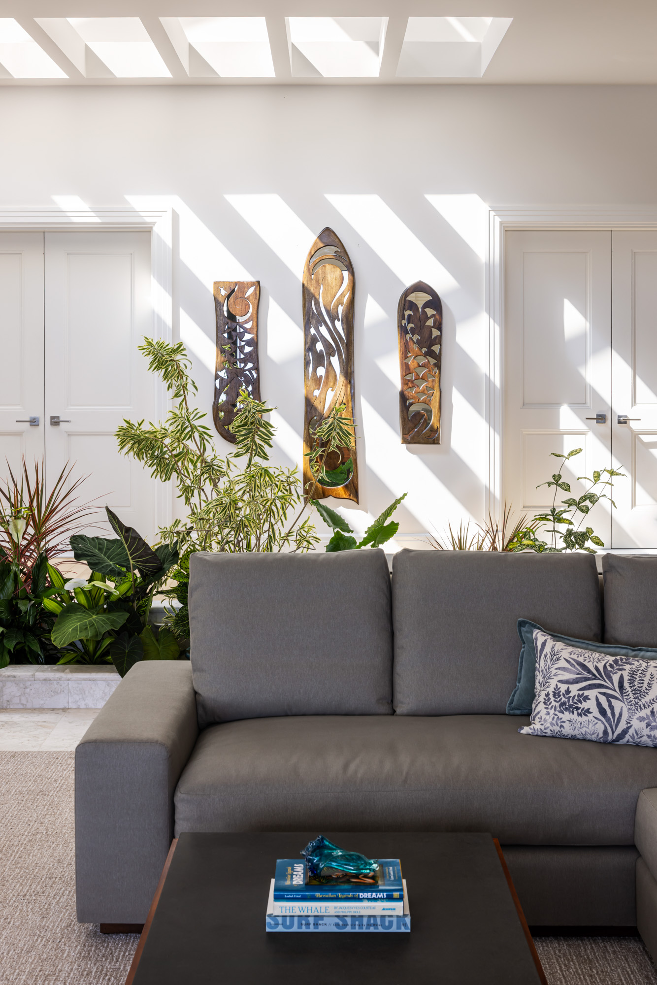 This residence at The Cape at Mauna Lani was designed by Studio Palomino to reflect the relaxed elegance of Hawaii’s Kohala Coast. The interiors combine warm natural materials, layered textures, and custom furnishings to create a space that feels both refined and deeply connected to its coastal surroundings.