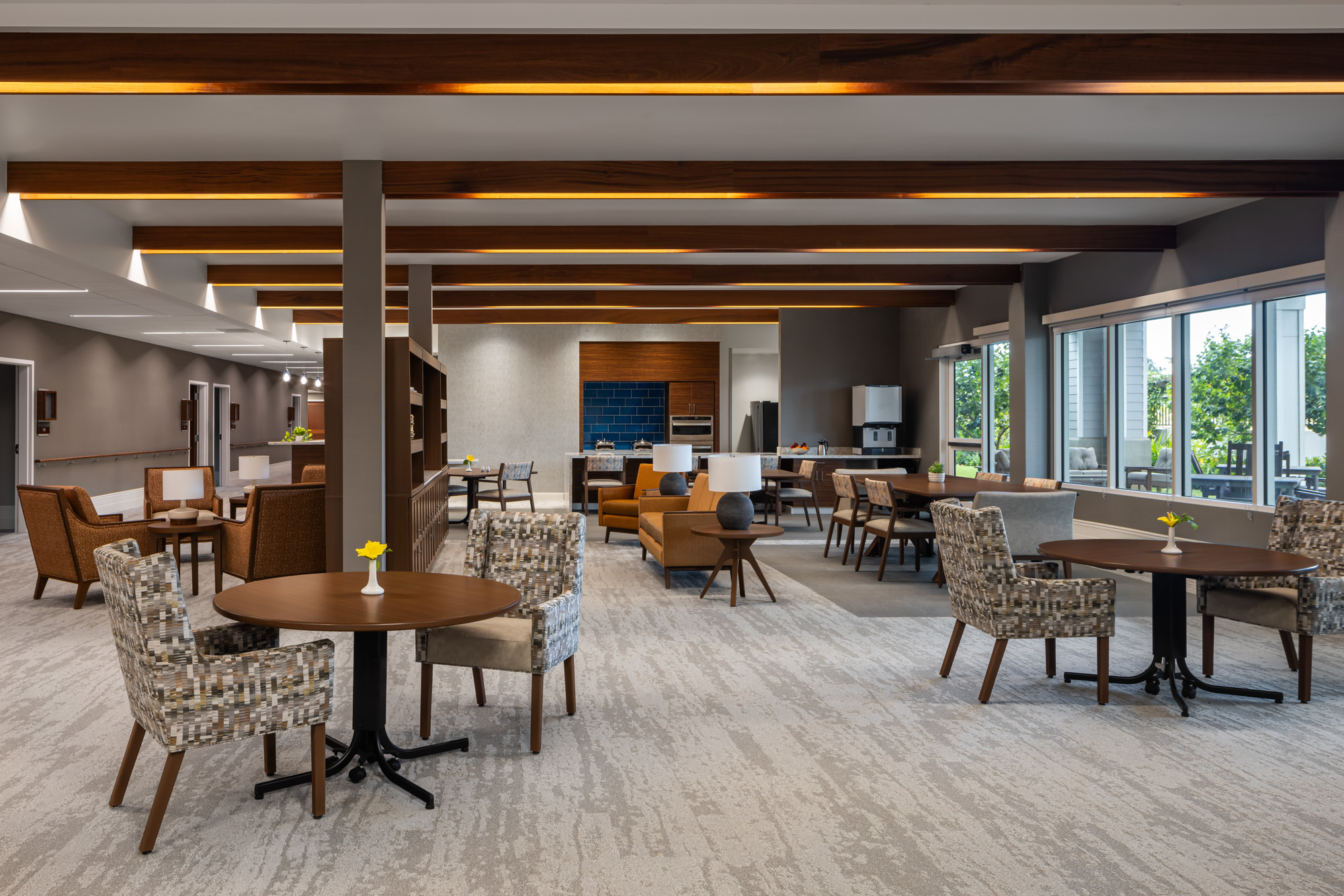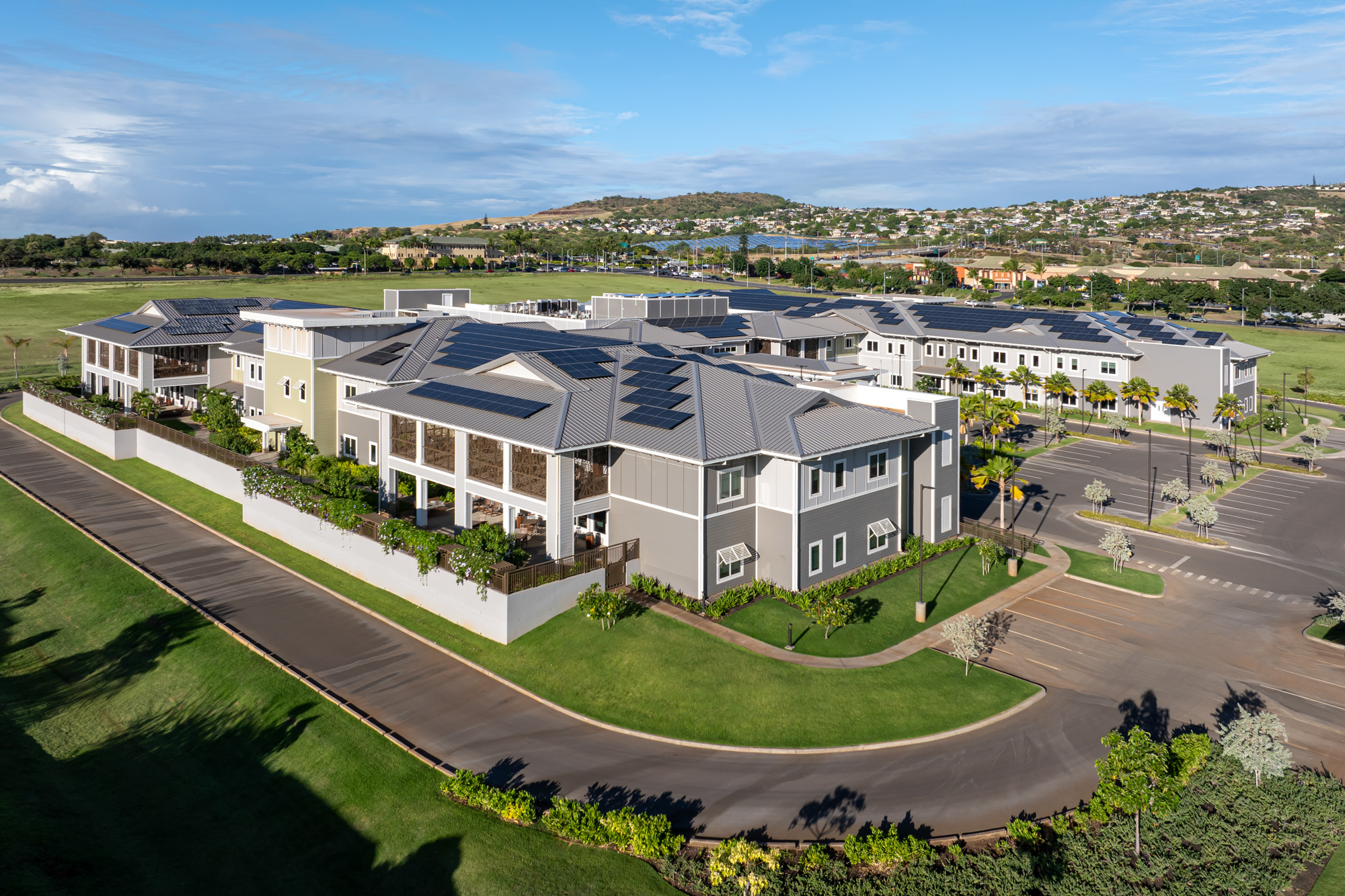 The design reflects a deep sense of honor and community: buildings are arranged in smaller household clusters to foster comfort and connection, while the architecture and landscape extend views and access to Hawaii’s natural surroundings. This thoughtful layout promotes healing, social engagement, and daily dignity.